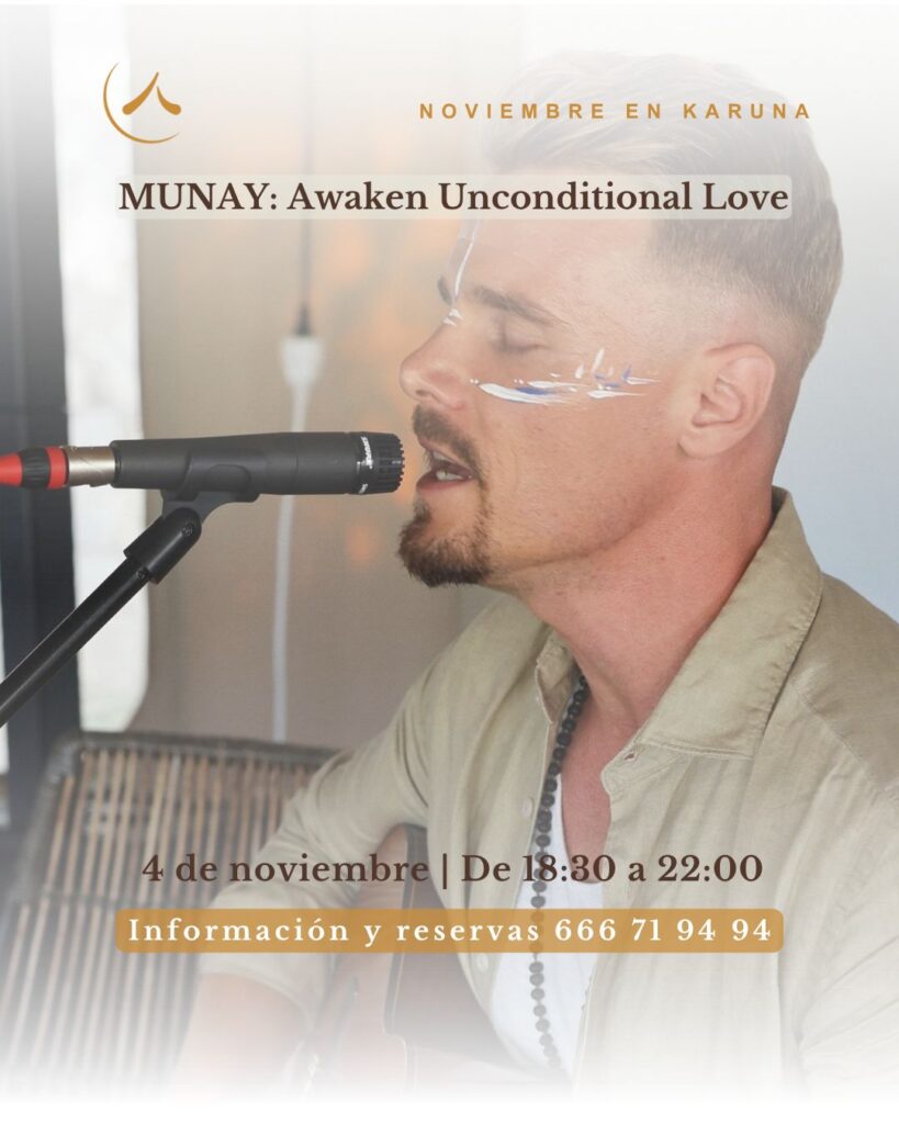 Te invitamos a abrir tu corazón y tu voz en una velada mágica en Karuna. «MUNAY» es un viaje sonoro diseñado para despertar el amor incondicional que reside en ti. Una oportunidad única para conectar con tu esencia, liberar emociones y vibrar en una frecuencia de amor puro a través del poder de la música y el canto.