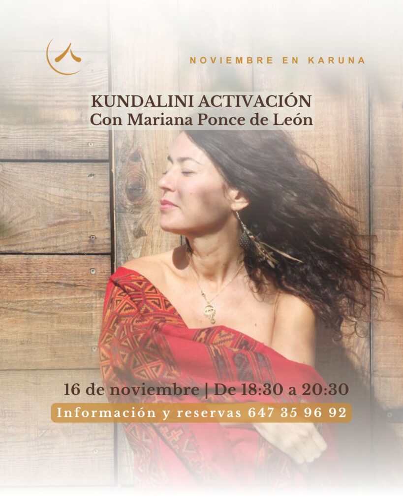 ¿Estás listo para despertar la energía vital que duerme en tu interior? Mariana Ponce de León te guiará en una poderosa sesión de Activación Kundalini en Karuna. Ríndete a la experiencia y permite que tu propia energía vital te guíe hacia la sanación, la claridad y una profunda expansión de tu conciencia.