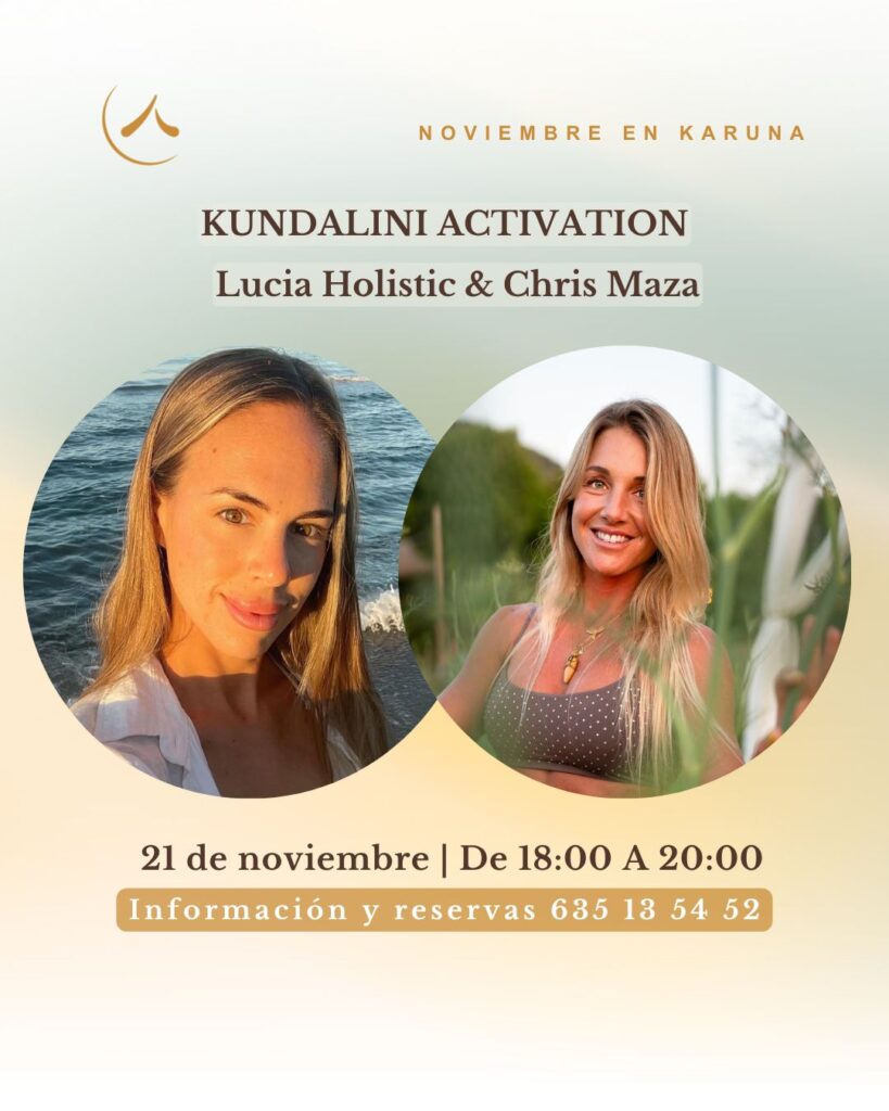 Prepárate para una experiencia de pura energía y transformación. Lucia Holistic y Chris Maza unen sus fuerzas para guiarte en una sesión de Activación Kundalini en Karuna. Un viaje profundo hacia tu interior para despertar tu energía vital, liberar lo que ya no te sirve y conectar con tu esencia más auténtica.