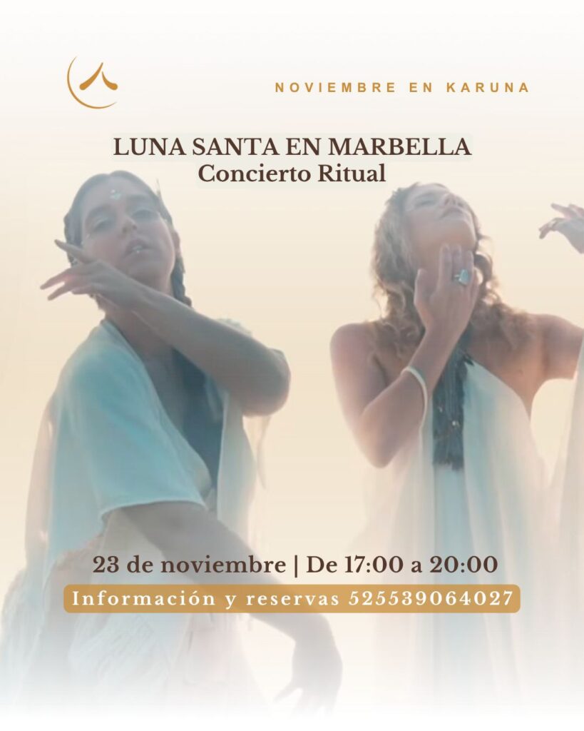 Déjate envolver por la magia de Luna Santa en un Concierto Ritual inolvidable en Karuna. Una velada sagrada para conectar con la energía de la luna, la música medicina y el poder del círculo. A través de cantos y rituales, te invitamos a un viaje interior para honrar tus ciclos y despertar tu divinidad.